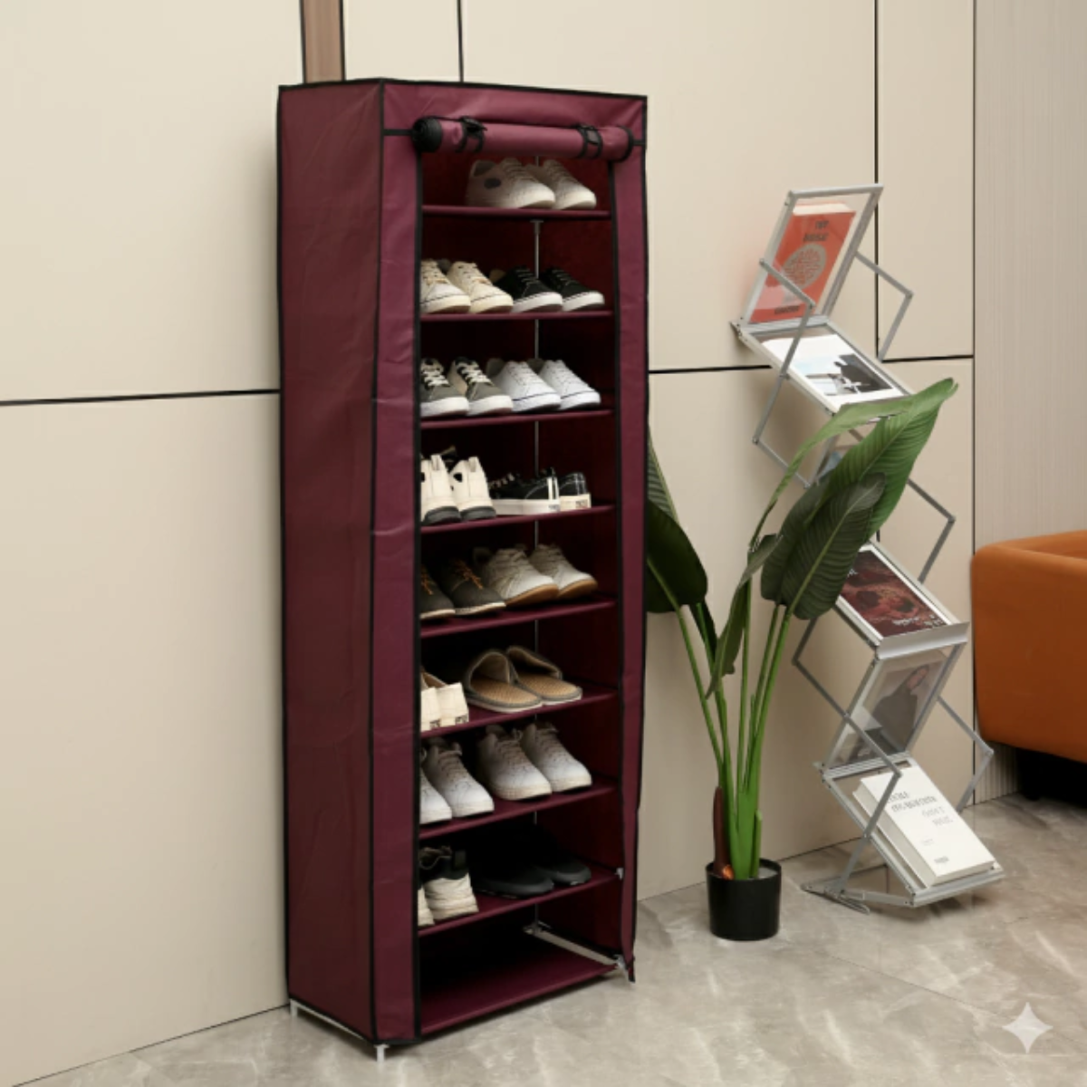 Este organizador ofrece 8 niveles amplios para almacenar calzado, ropa, bolsos o accesorios.